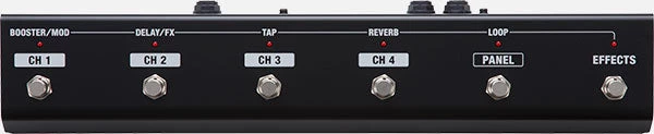- Switch instantly between four channels and two routes of loops, reverbs, boost settings, etc.