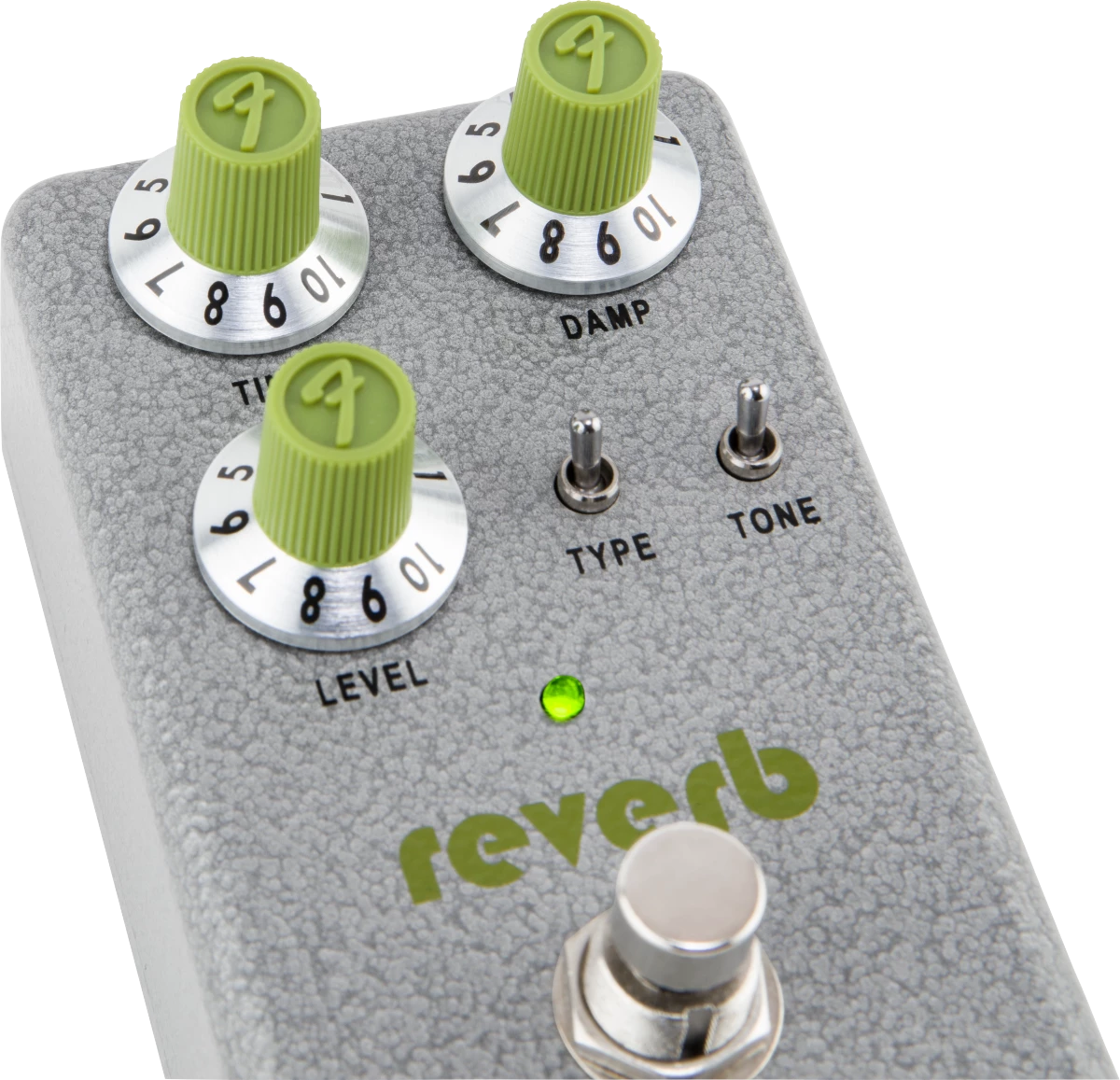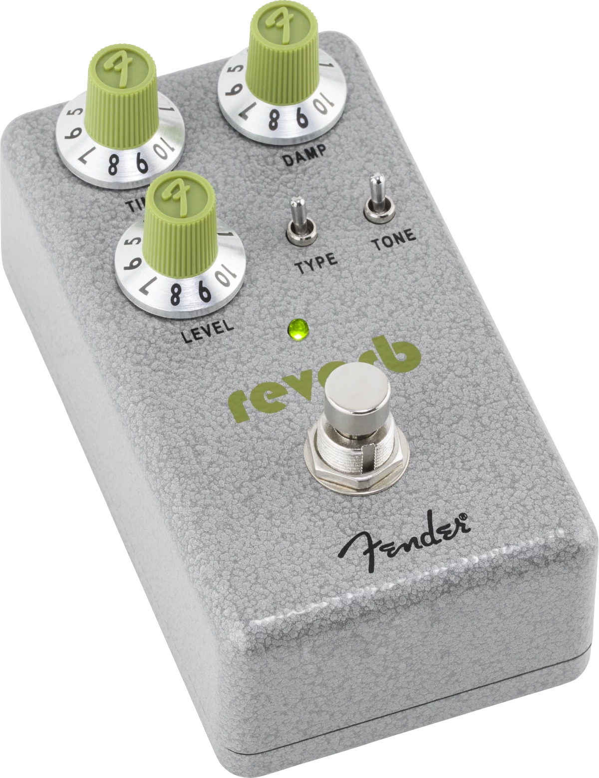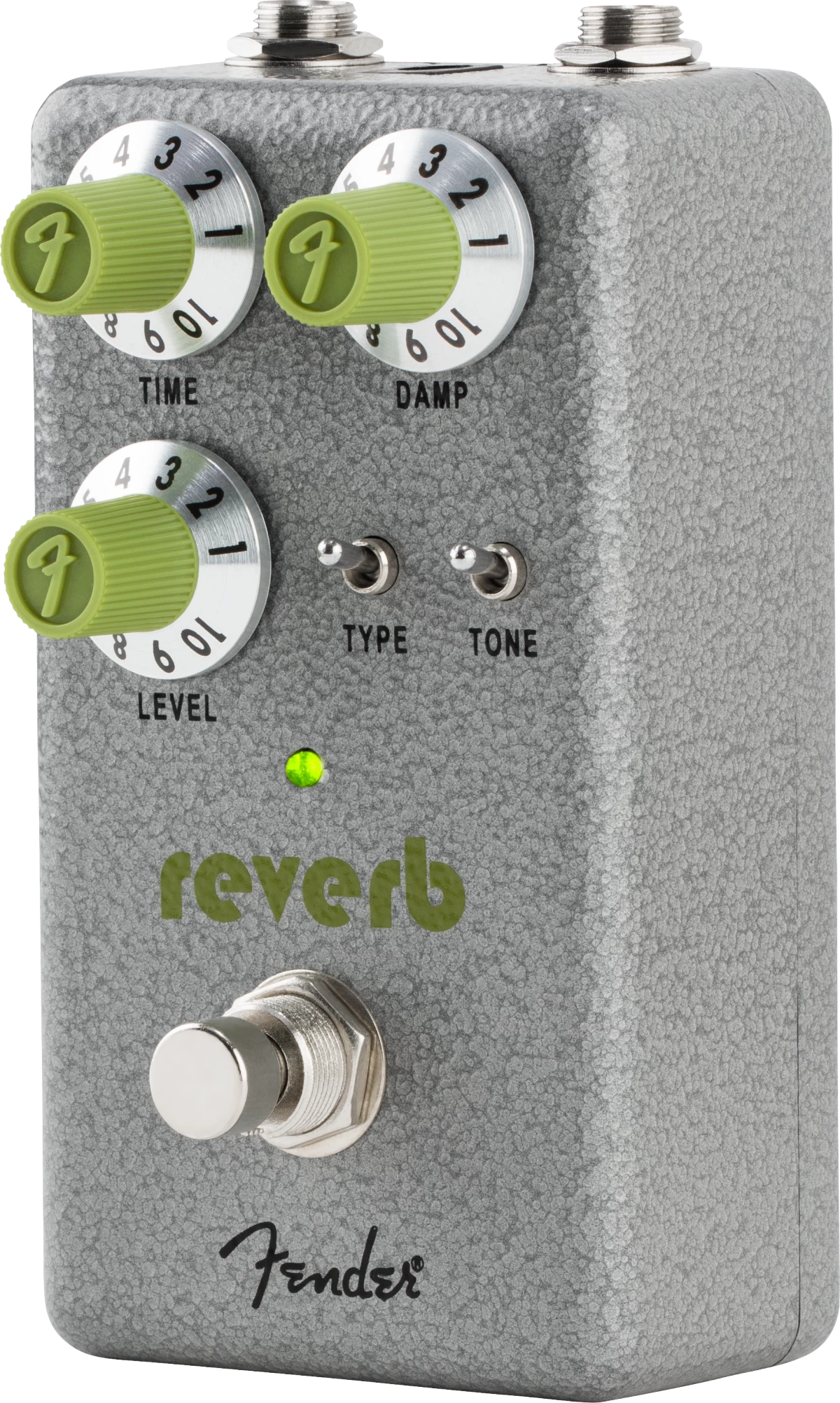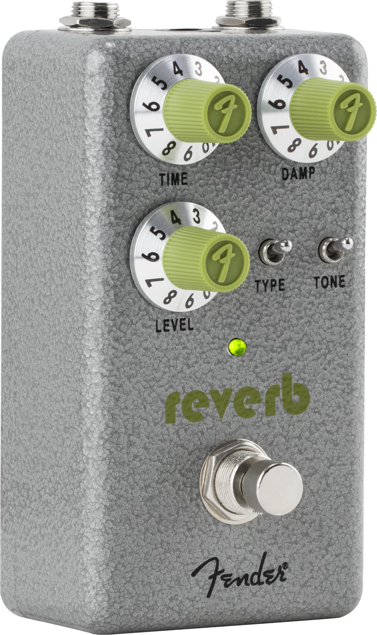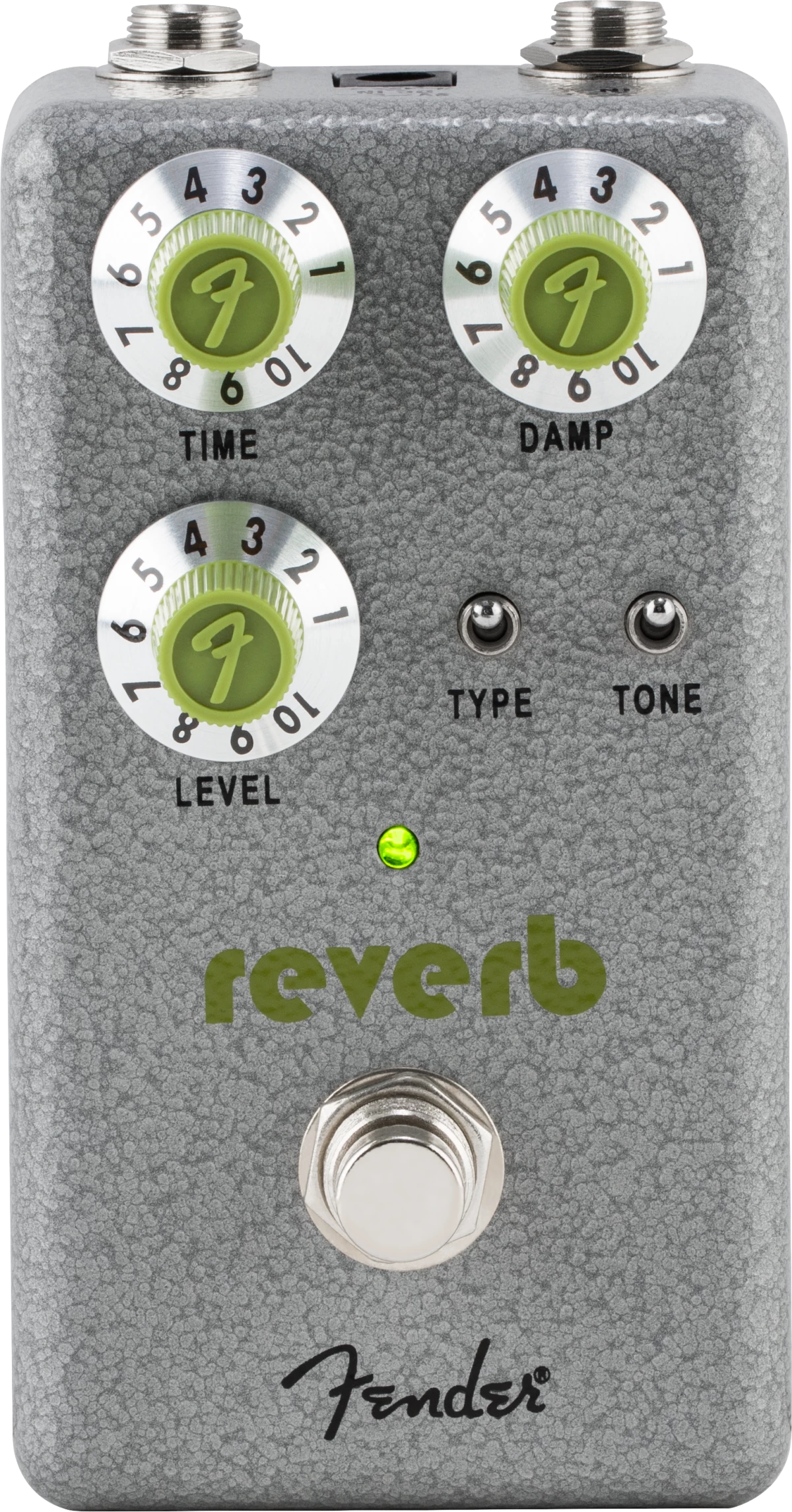 The Hammertone™ Reverb delivers three classic reverb effects – Hall, Room and Plate – in a compact stomp that will integrate seamlessly into your rig. Powerful damping control and tone switch offer supreme flexibility, while the Fender-designed on-board reverb tones are perfect for subtle to extreme ambience.