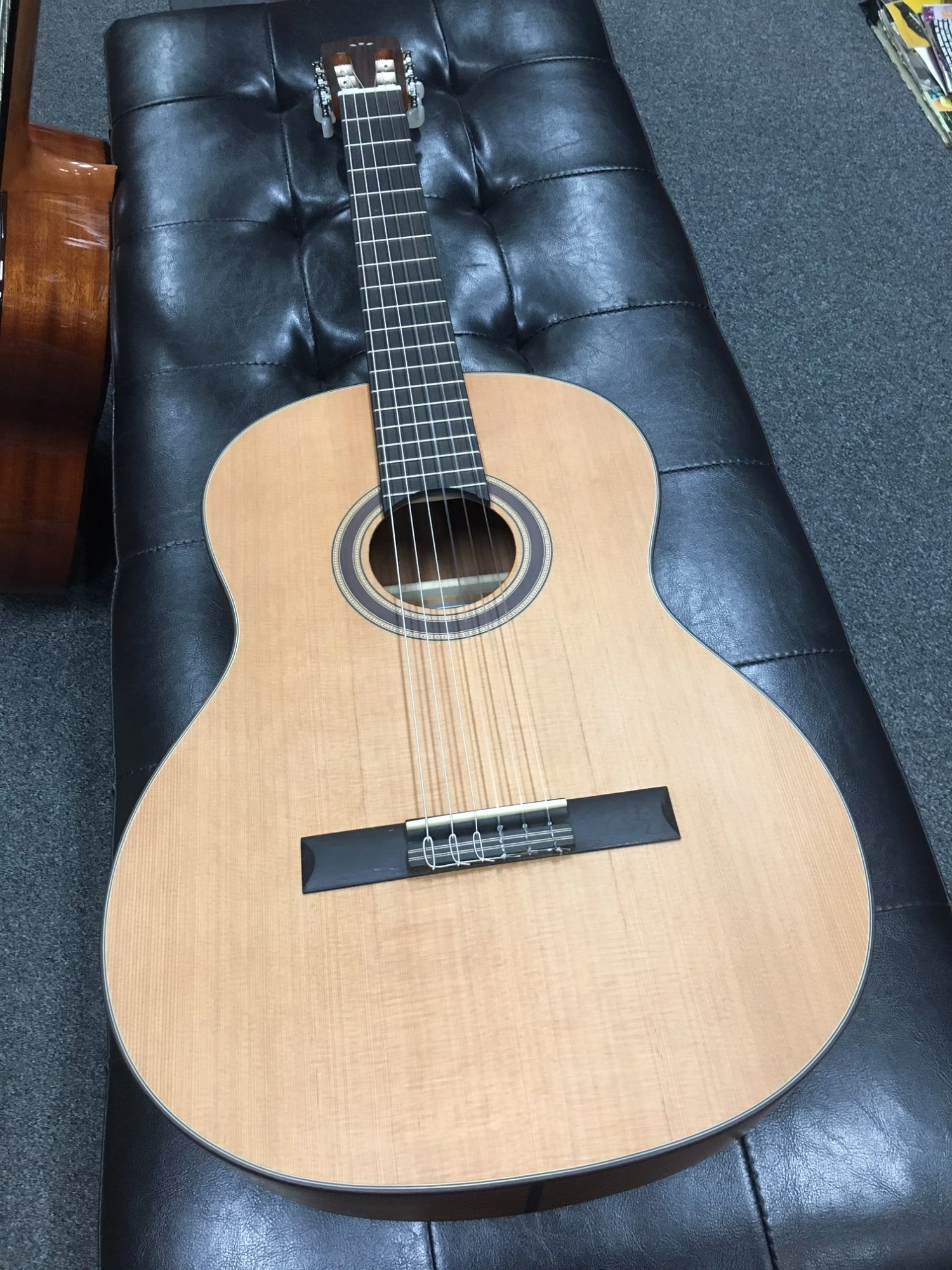One of the most popular models and a staple in the Iberia Series lineup, the Cordoba C3M is a full-sized, handcrafted guitar. It is built with the traditional Spanish fan bracing, a solid cedar top and mahogany back and sides. The C3M also has a hand inlaid wooden rosette, a rosewood fingerboard, and nickel plated tuning machines with pearl buttons. The “M” in the title stands for its light matte finish.