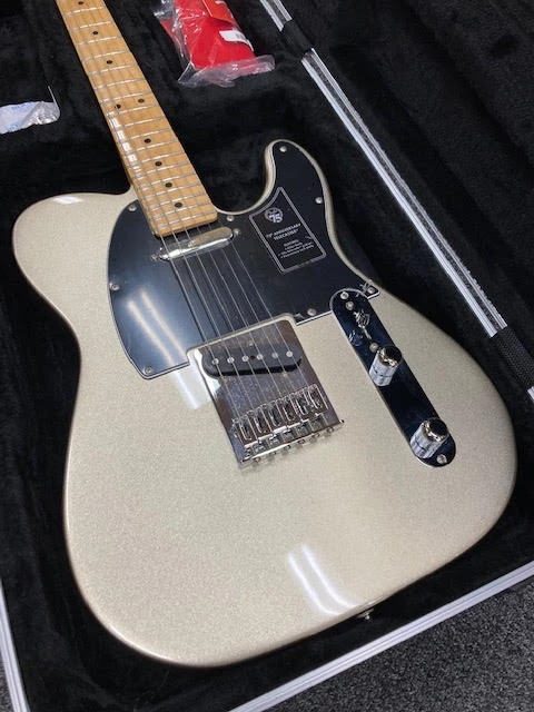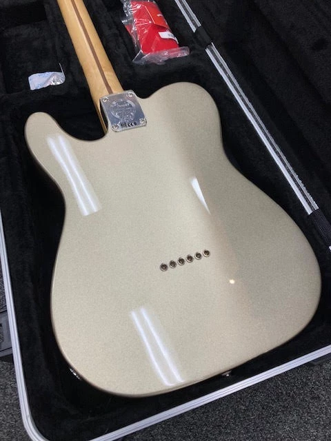 The 75th Anniversary Telecaster is finished in Diamond Anniversary metallic with a matching painted headstock. The maple neck features a “Modern C” profile, medium jumbo frets and a satin finish for supreme comfort and playability. Vintage-style ‘50s Telecaster pickups provide warm and twangy tone while a 6-saddle bridge improves intonation. Every Anniversary Telecaster features a special 75th anniversary engraved neck plate.