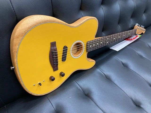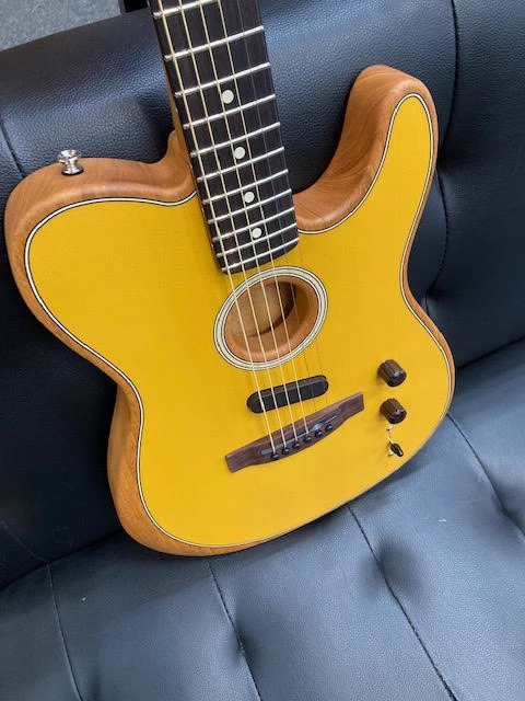 The evolution of Fender’s trailblazing Acoustasonic platform continues with the introduction of the Acoustasonic Player Telecaster. This acoustic-electric guitar offers its own set of six voices that showcases its unique personality. A streamlined 3-way switch allows for shape-shifting between acoustic and electric tones. With the Acoustasonic Player Telecaster, this platform has been refined to offer a versatile, more accessible tool for the modern musician.