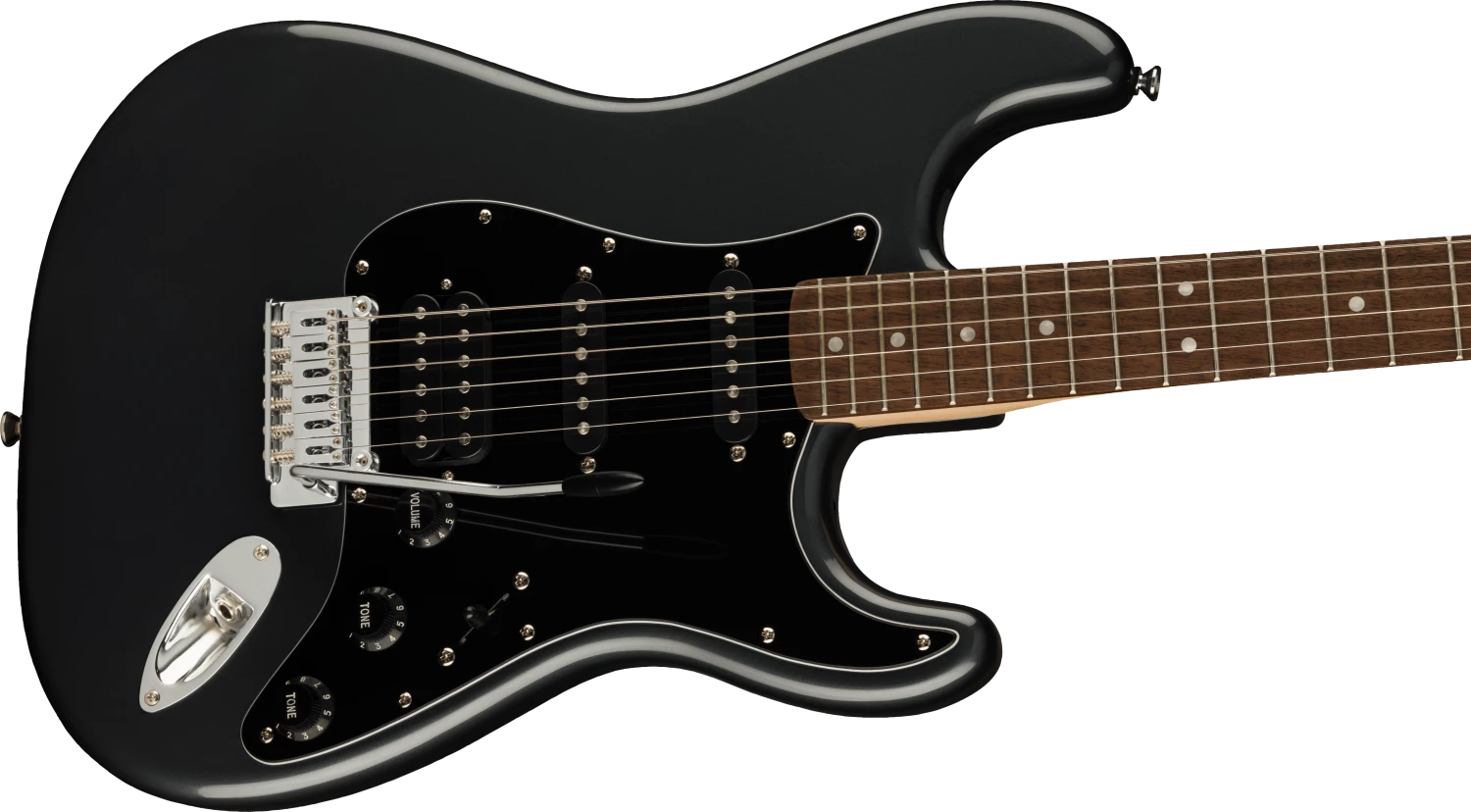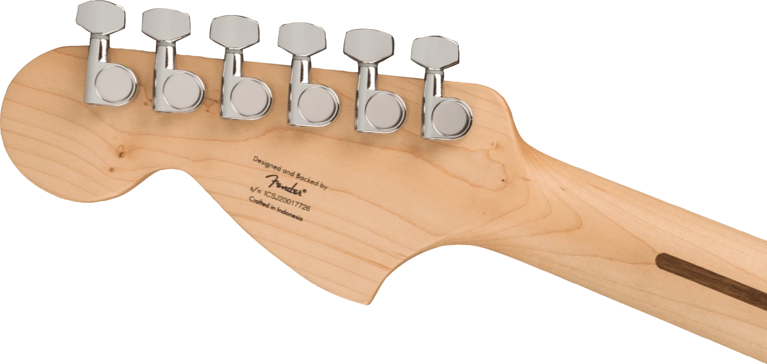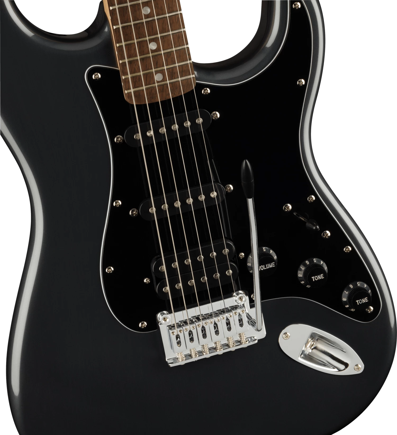 A superb gateway into the time-honored Fender® family, the Squier® Affinity Series™ Stratocaster® HSS delivers legendary design and quintessential tone for today’s aspiring guitar hero. This Strat® features several player-friendly refinements such as a thin and lightweight body, a slim and comfortable “C”-shaped neck profile, a 2-point tremolo bridge for superior tremolo action and sealed die-cast tuning machines with split shafts for smooth, accurate tuning and easy restringing. Loaded with a Squier humbucking bridge pickup and single-coil neck and middle pickups for genre-defying sonic variety, this model is ready to accompany any player at any stage.