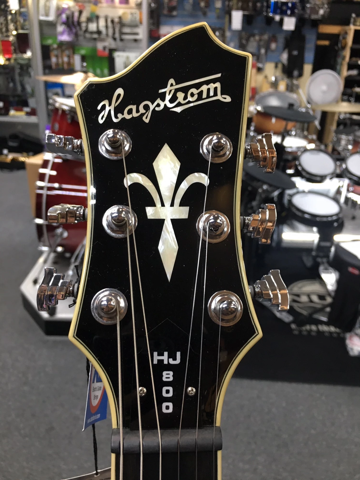 Right underneath the top part, where the two beautifully swept beams meet, it features a string claw for easy access and super comfortable string changes. Adorned with the legendary Hagstrom crest it truly is elegance defined.