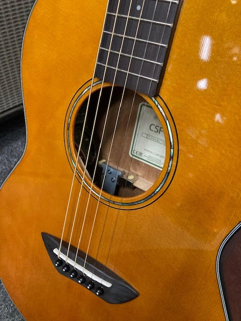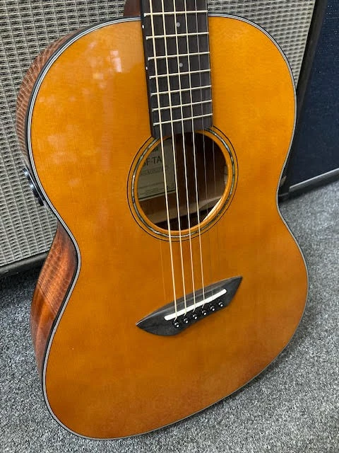 Yamaha CSF-TA TransAcoustic parlor guitars transport you to new creative spaces with immersive reverb and lush chorus effects, without needing an amp or other external gear. The compact CSF TransAcoustic features a Sitka spruce top, mahogany back and sides, and innovative scalloped bracing for a full, rich sound. Durable hard bag included.