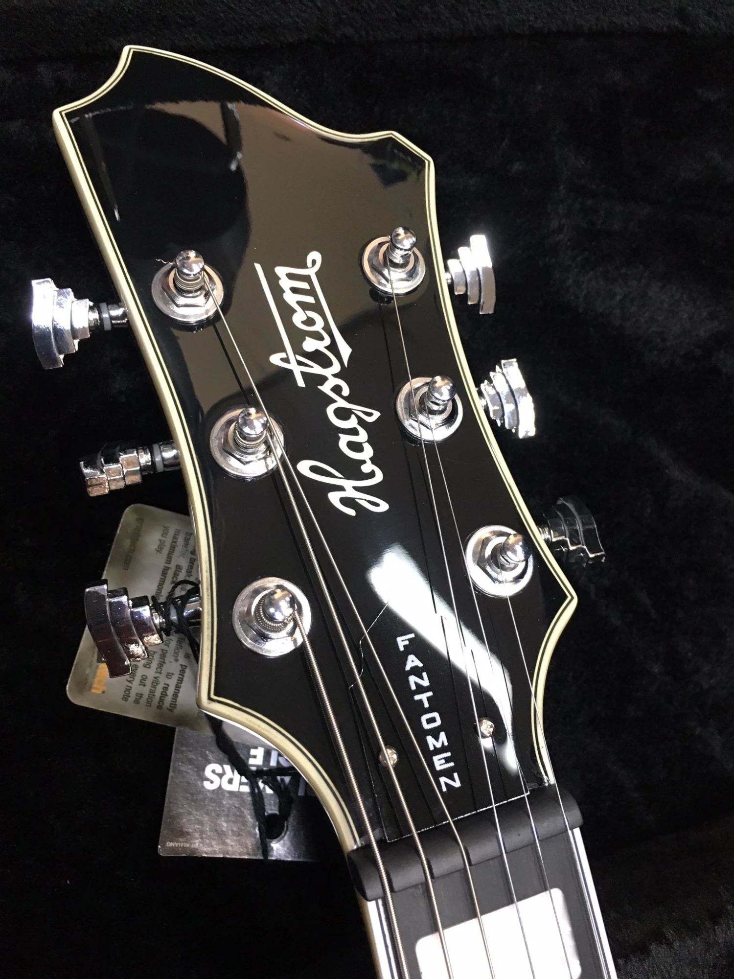Resinator wood is a wood composite material that is both more uniform in density and more stable than any standard wood product. These characteristics eliminate dead spots or “wolf tones” sometimes associated with conventional wood fingerboards. Resinator wood has an articulate sound similar to high quality ebony, but without any of the problems associated with ebony. It provides a stable and clear tone, and also adds higher overtones and harmonics which uniquely detail each note. Like our H-Expander truss rod, Resinator wood is a major contributor to the distinctive “Hagstrom tone”.