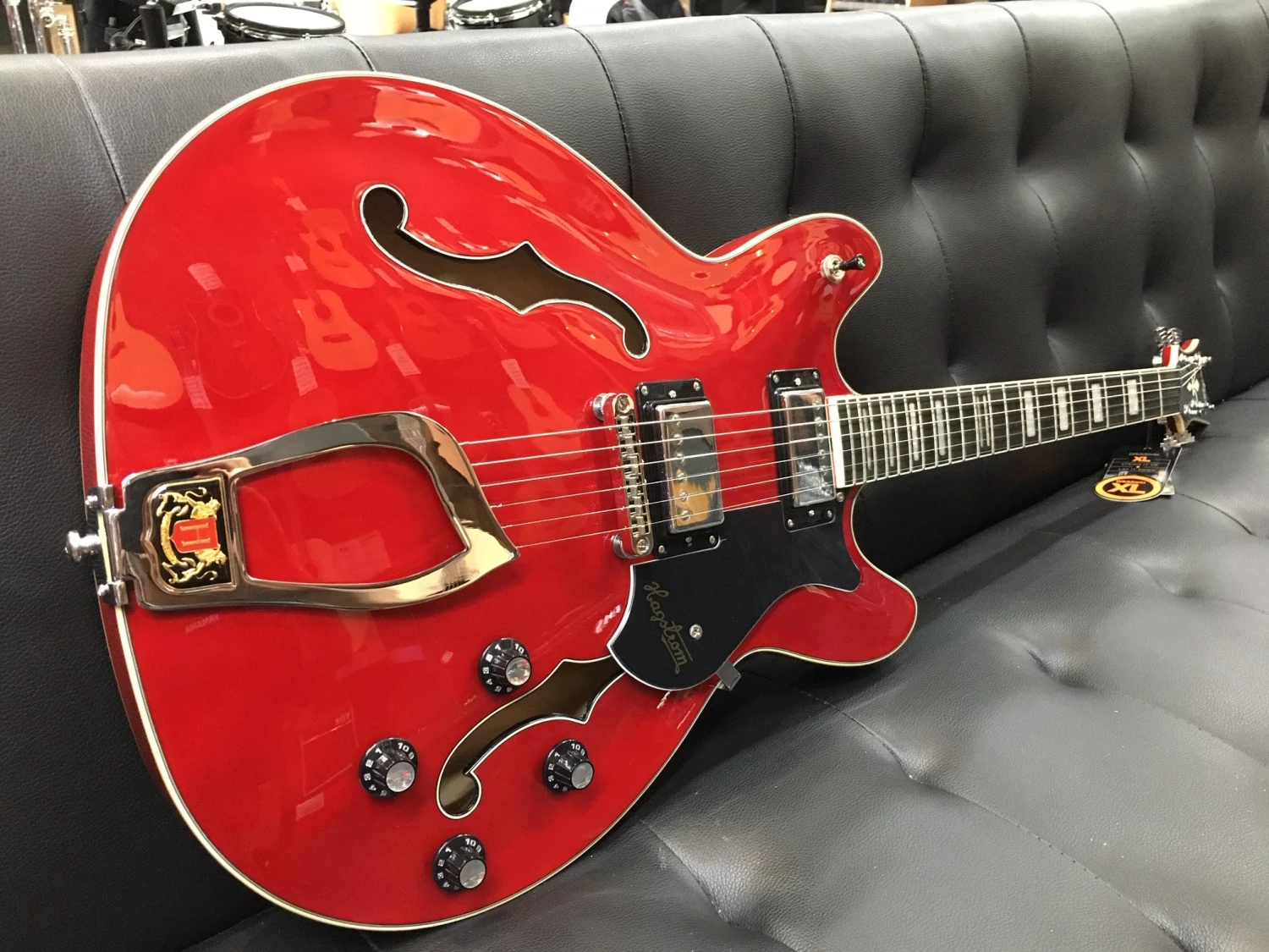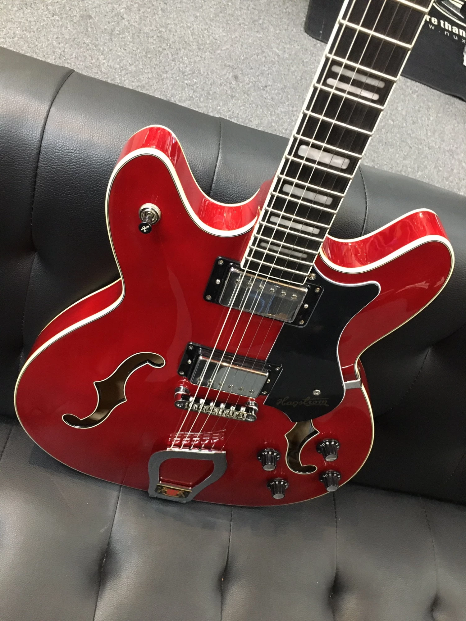 Right underneath the top part, where the two beautifully swept beams meet, it features a string claw for easy access and super comfortable string changes. Adorned with the legendary Hagstrom crest it truly is elegance defined.