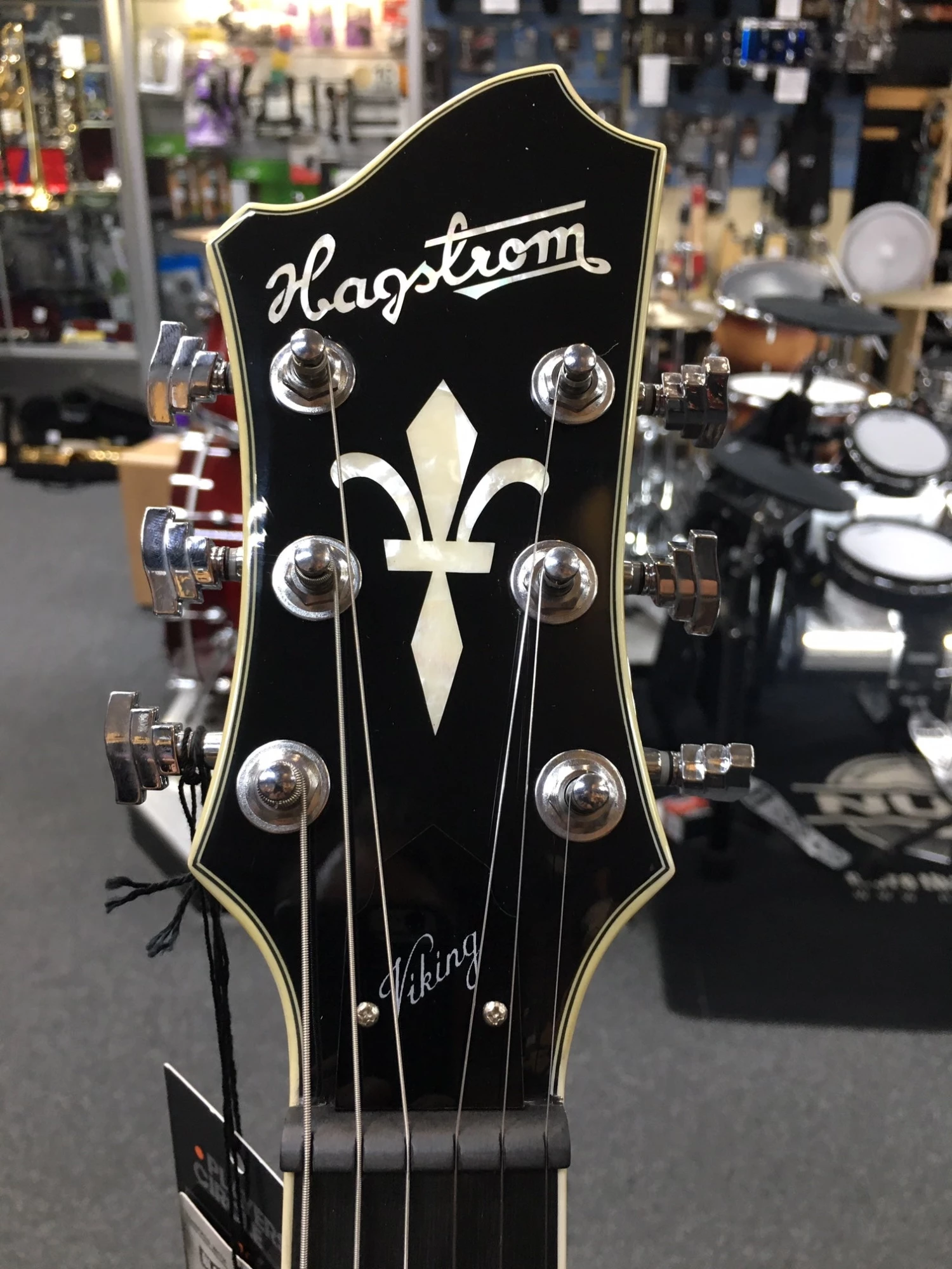 Hagstrom models use 18:1 or 15:1 gear ratio machine heads based on our own designs to insure accurate tuning. Viking and HB series basses feature machine heads with a 17:1 gear ratio.