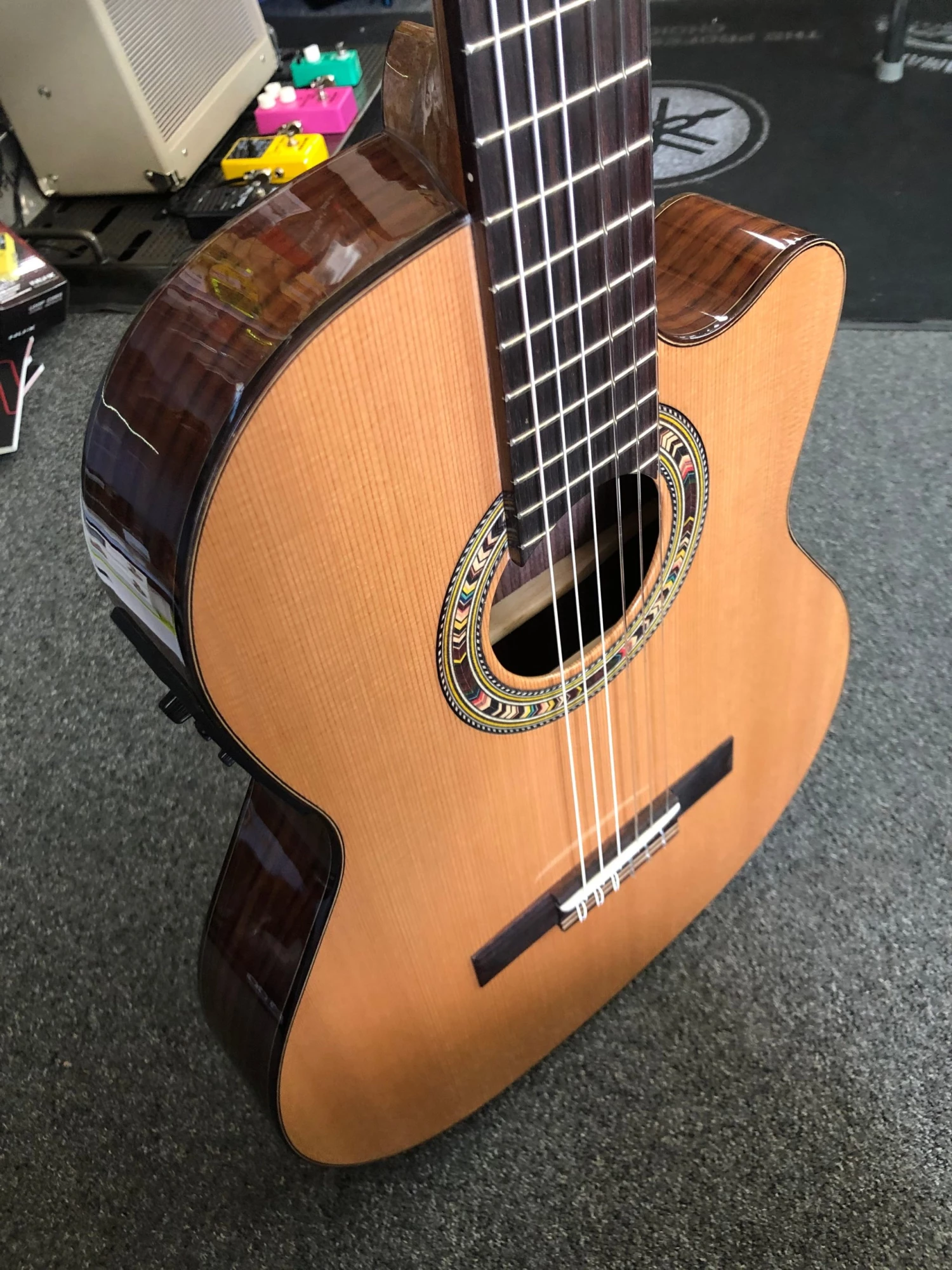 With an inviting venetian cutaway and versatile Fishman Presys Pro Blend system, the sound comes through the warm Rosewood / Cedar wood pairing with clarity and class.
