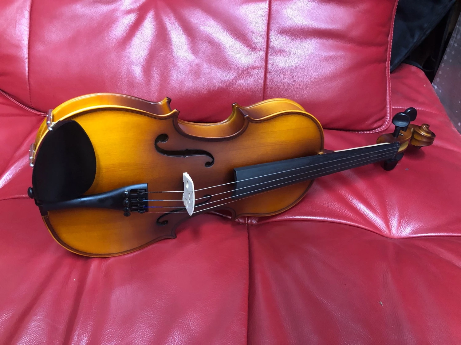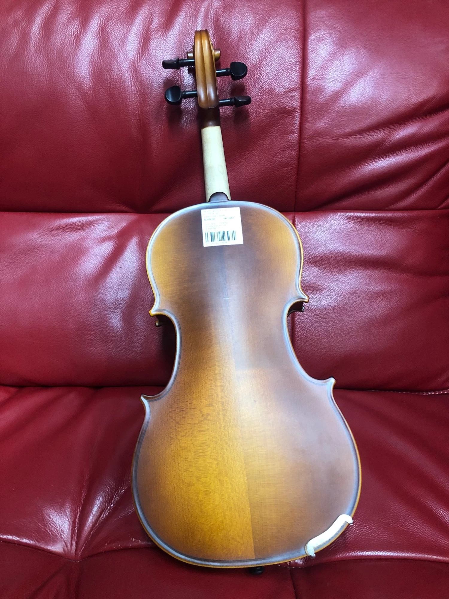 The Solid Spruce top and Solid Maple back and Sides delivers a rich tone. The Inlaid Purfling, Ebony Fingerboard and Pegs combine to give the instrument the classic traditional look.