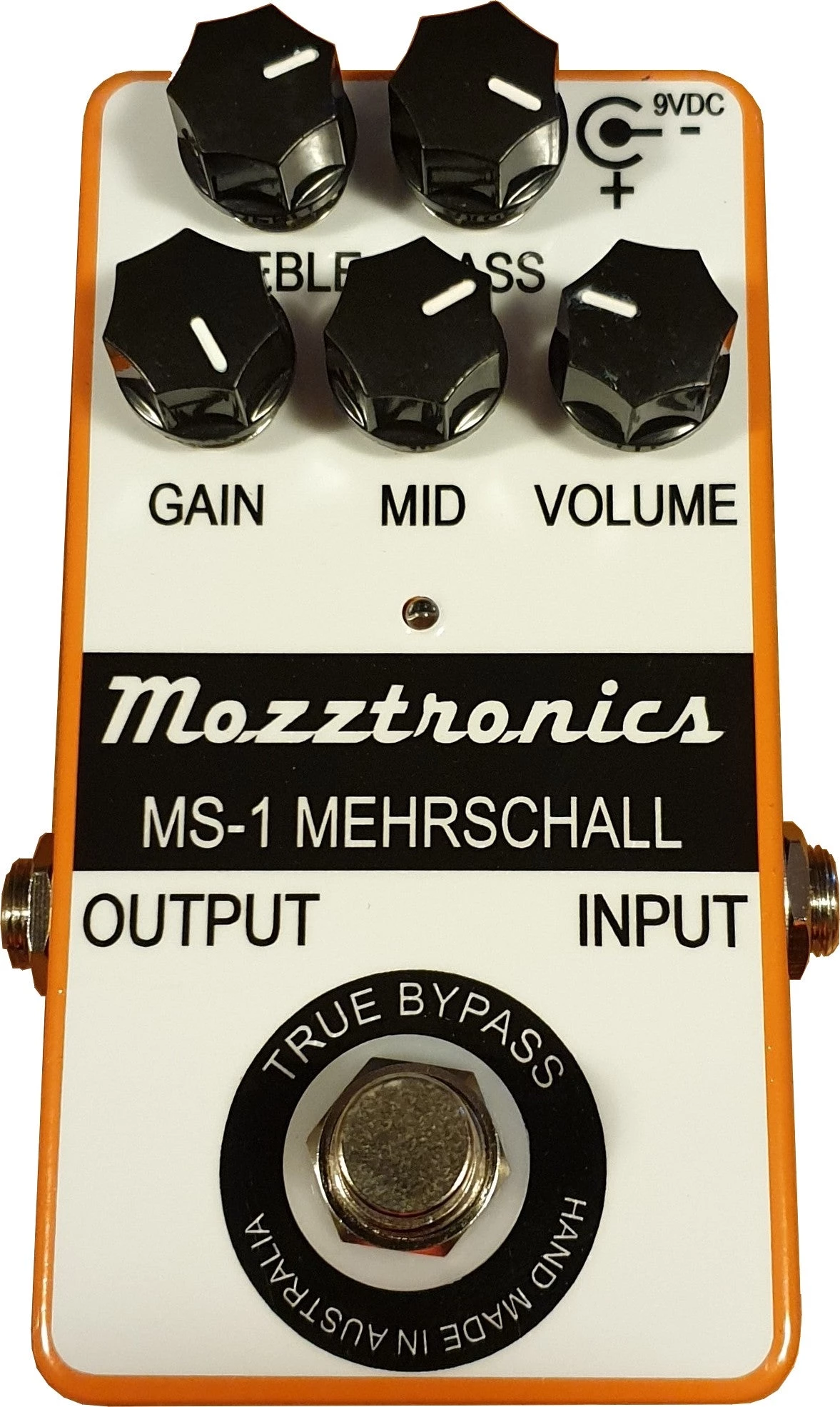 There are a few iconic valve guitar amps that we at Mozztronics adore. Apart from the AC amp used by the Beatles & Brian May, the American ’59 bass amp loved by guitarists, the amp favoured by Pete Townshend, the other is the iconic 800 series british amp. We have used the 800 version and made our emulation into a solid state footswitchable pedal, which we have named the “Mehrschall” in honour of its parentage. Mehrschall is german for “more sound” which we think is very appropriate. This pedal is not a dirt pedal as such, it’s our emulation of this classic amp.