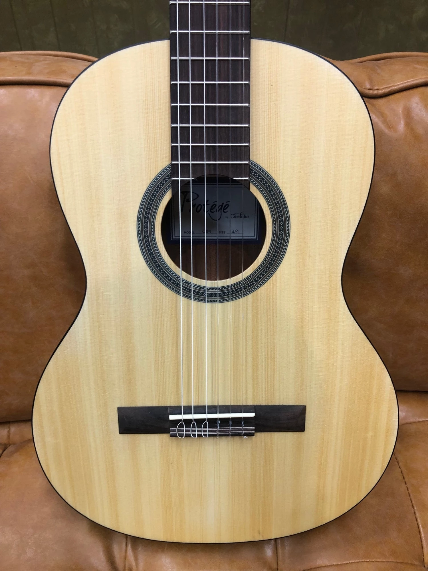 The Protégé by Córdoba C1M 3/4 is the perfect nylon string guitar for students of all levels, and is perfectly at home in the classroom or at home. Comfortable and easy to play, it’s a great first guitar at an affordable price. Every Protégé C1M is built with a spruce top, mahogany back and sides, a comfortable, slim neck profile, traditional mosaic rosette, and a matte polyurethane finish. Like all Córdoba instruments, C1M models feature premium Savarez strings and an adjustable truss rod for lifetime neck stability.