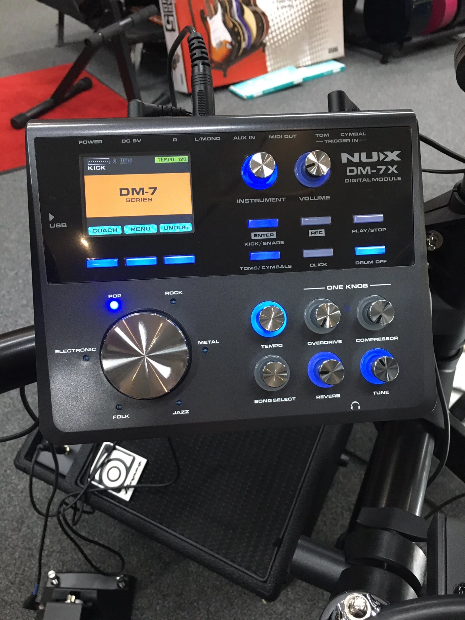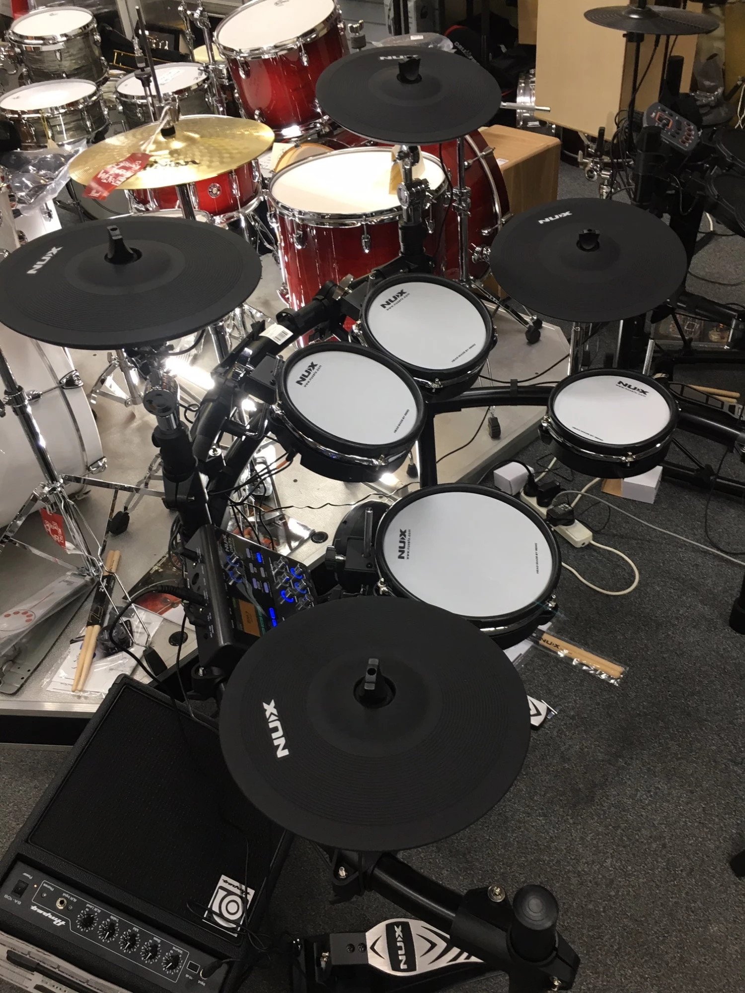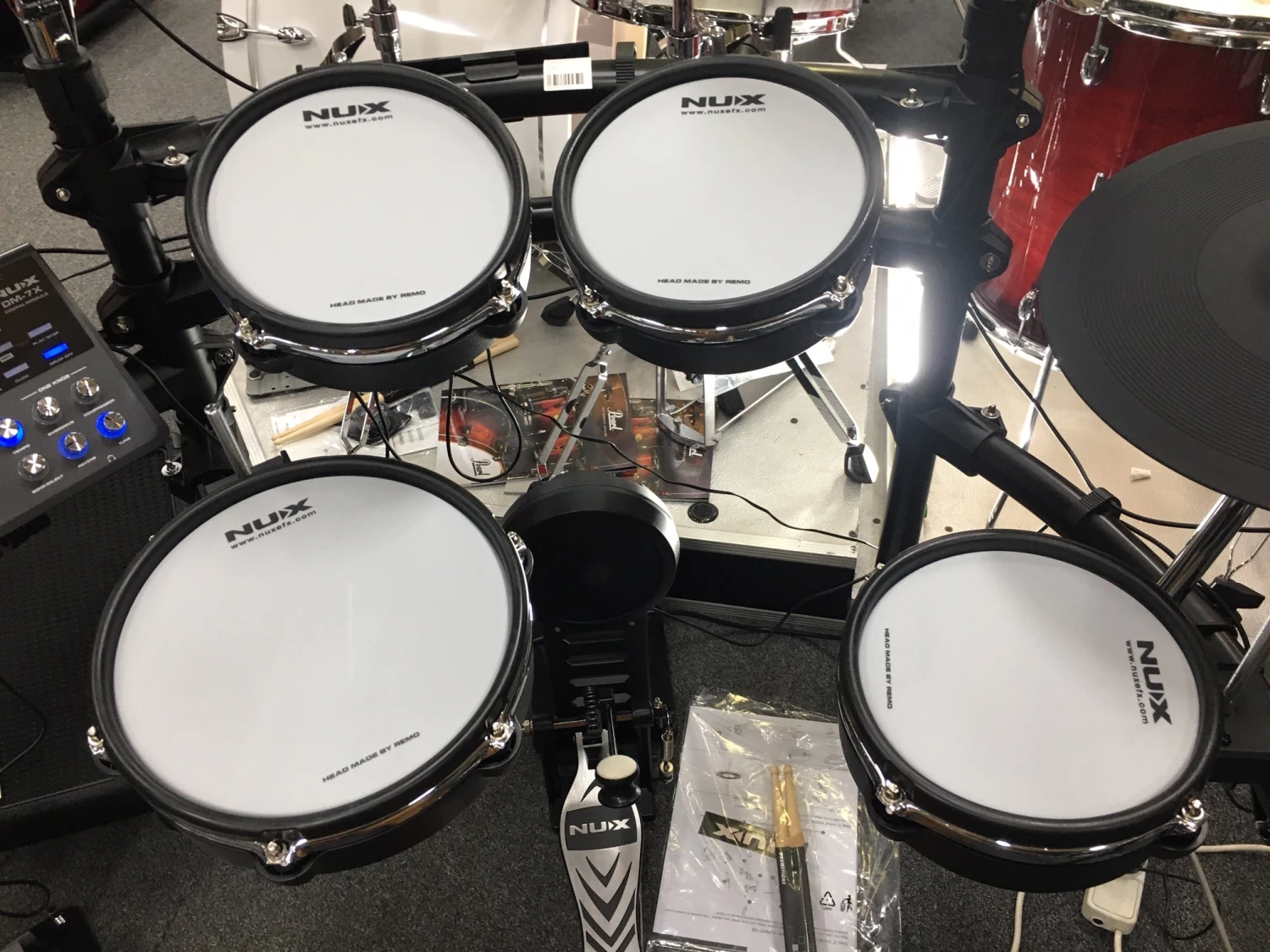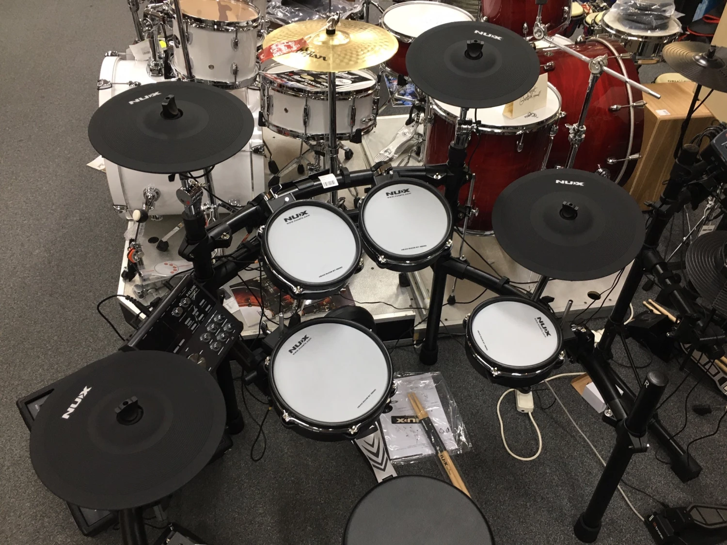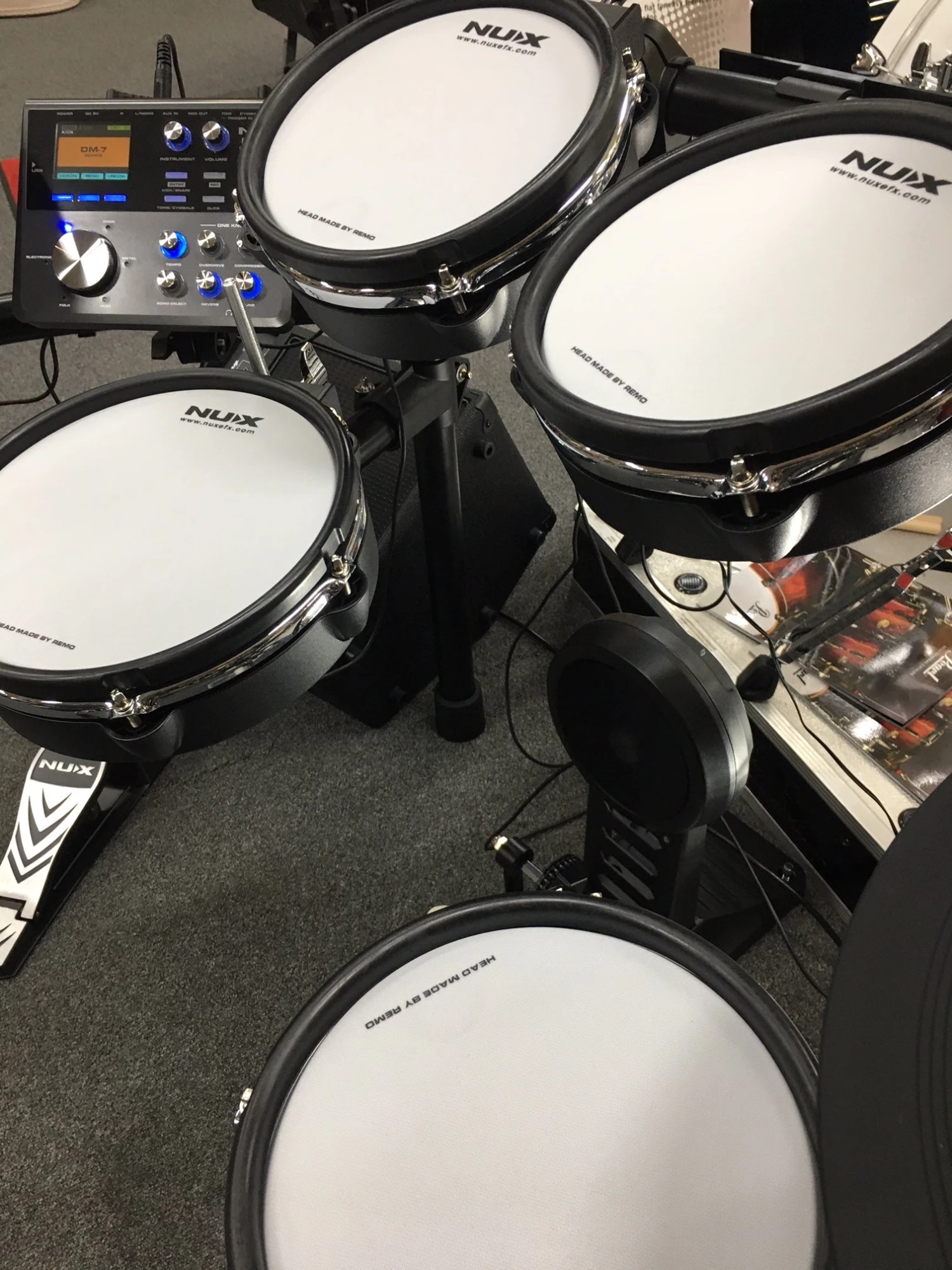 IN stock right now and ready to blow your mind ! Feel and sounds are tip top on the all new NUX DM-7X electronic drum kit .