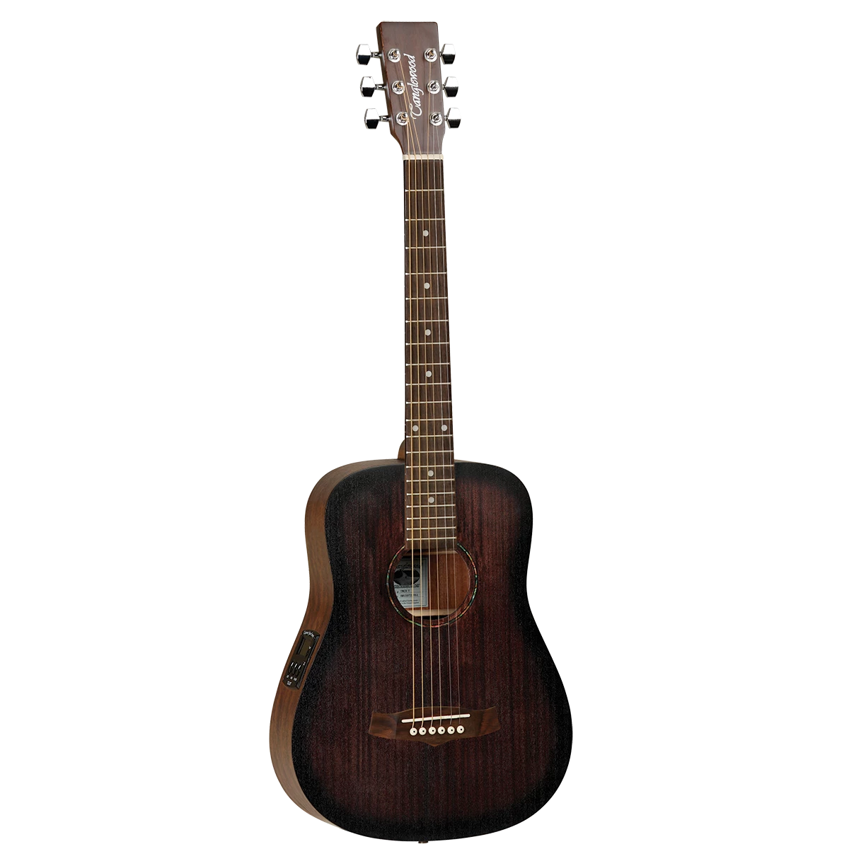This Tanglewood travel guitar is a great travel companion or ideal for the smaller player . Built in pickup means you can plug in and play also !